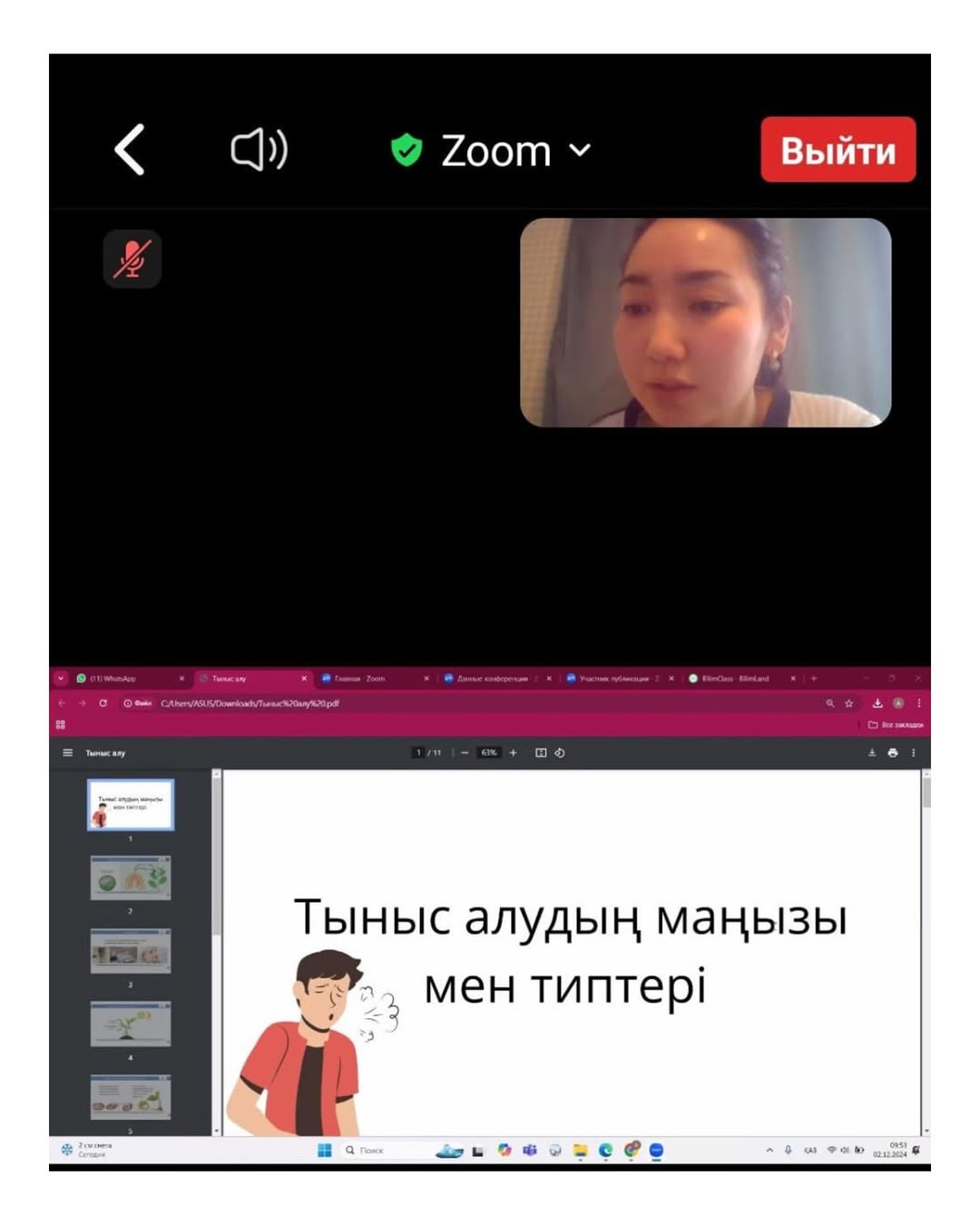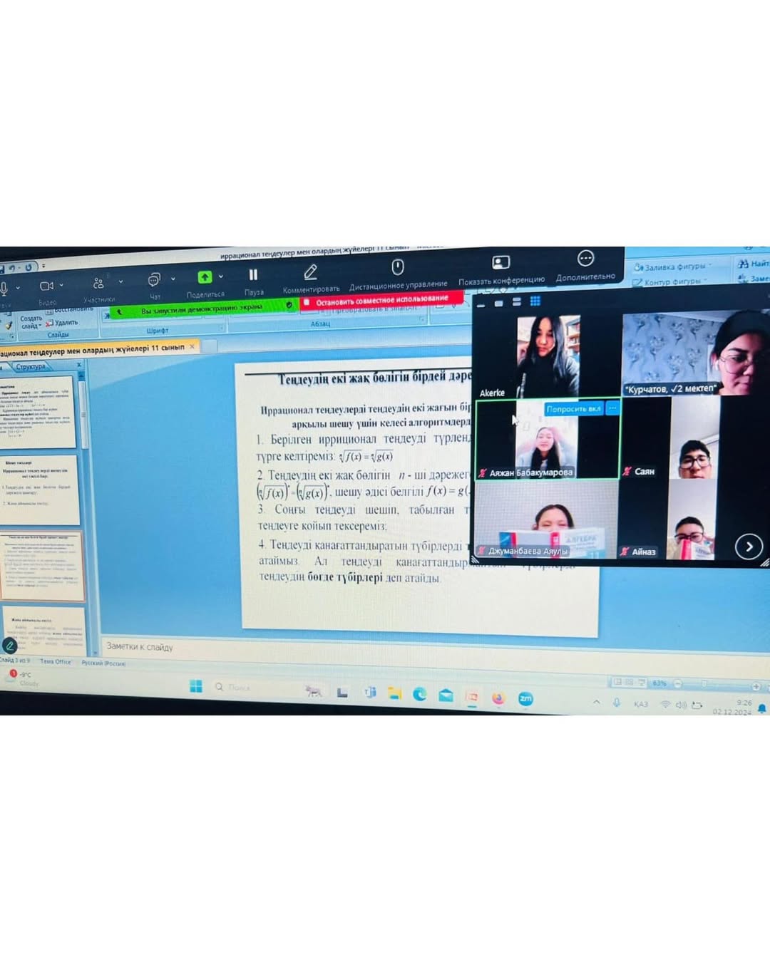 2024 жылдың 2 желтоқсанда ауа-райының қолайсыздығына байланысты сабақ қашықтықтан өткізілді. Мұғалімдер сабақ өткізу кезінде ZOOM, BILIMLAND платформаларын пайдаланды.