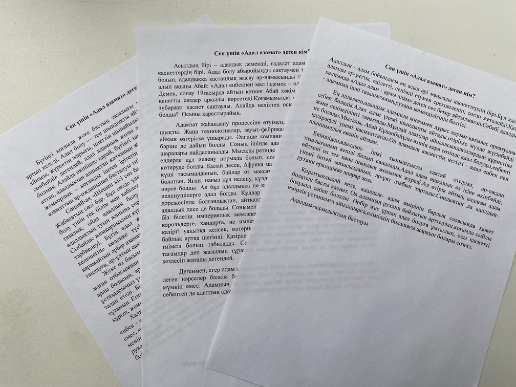 В рамках единой воспитательной программы «Адал азамат» среди учащихся 10 - 11 классов был проведён конкурс эссе на тему «Закон и порядок».