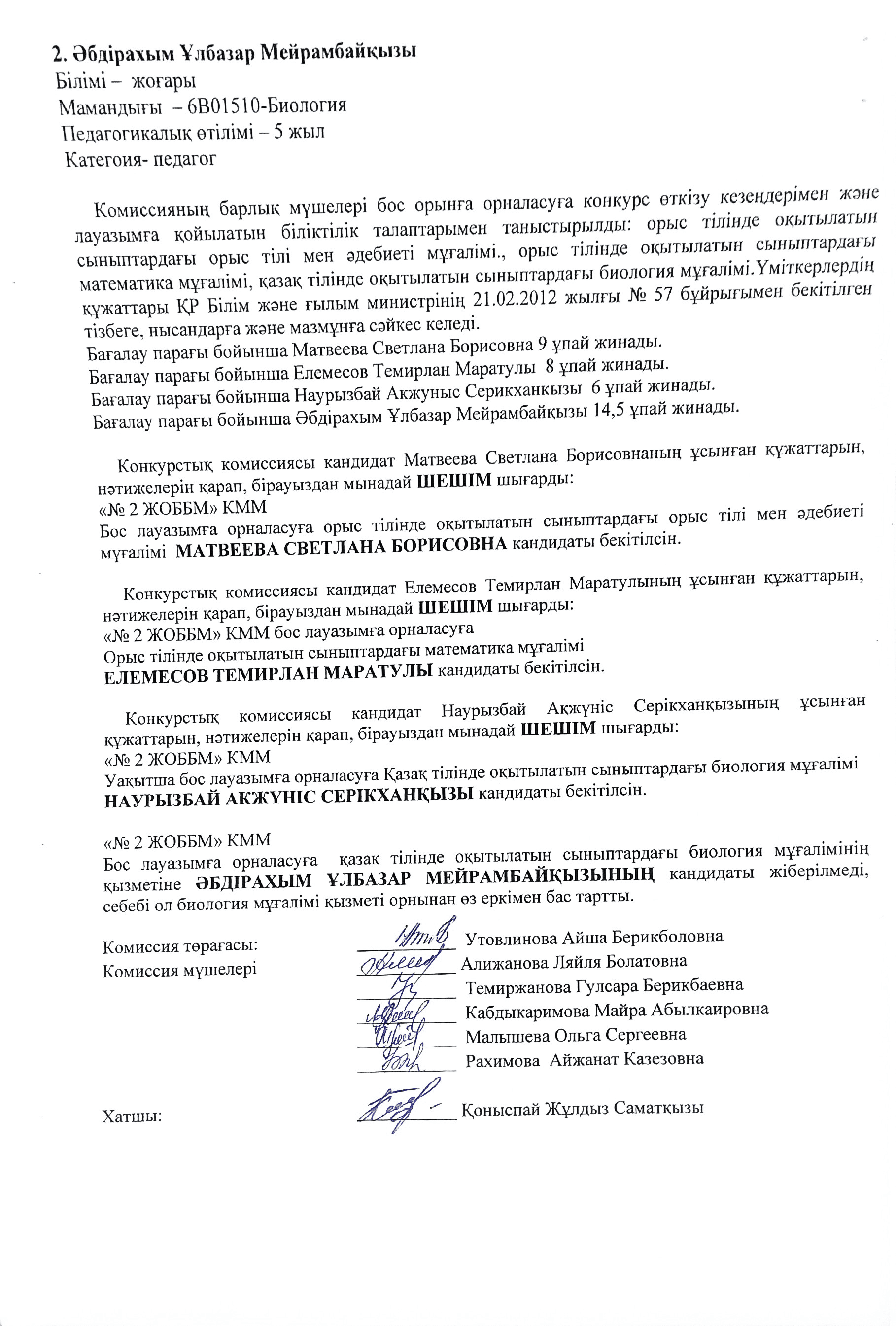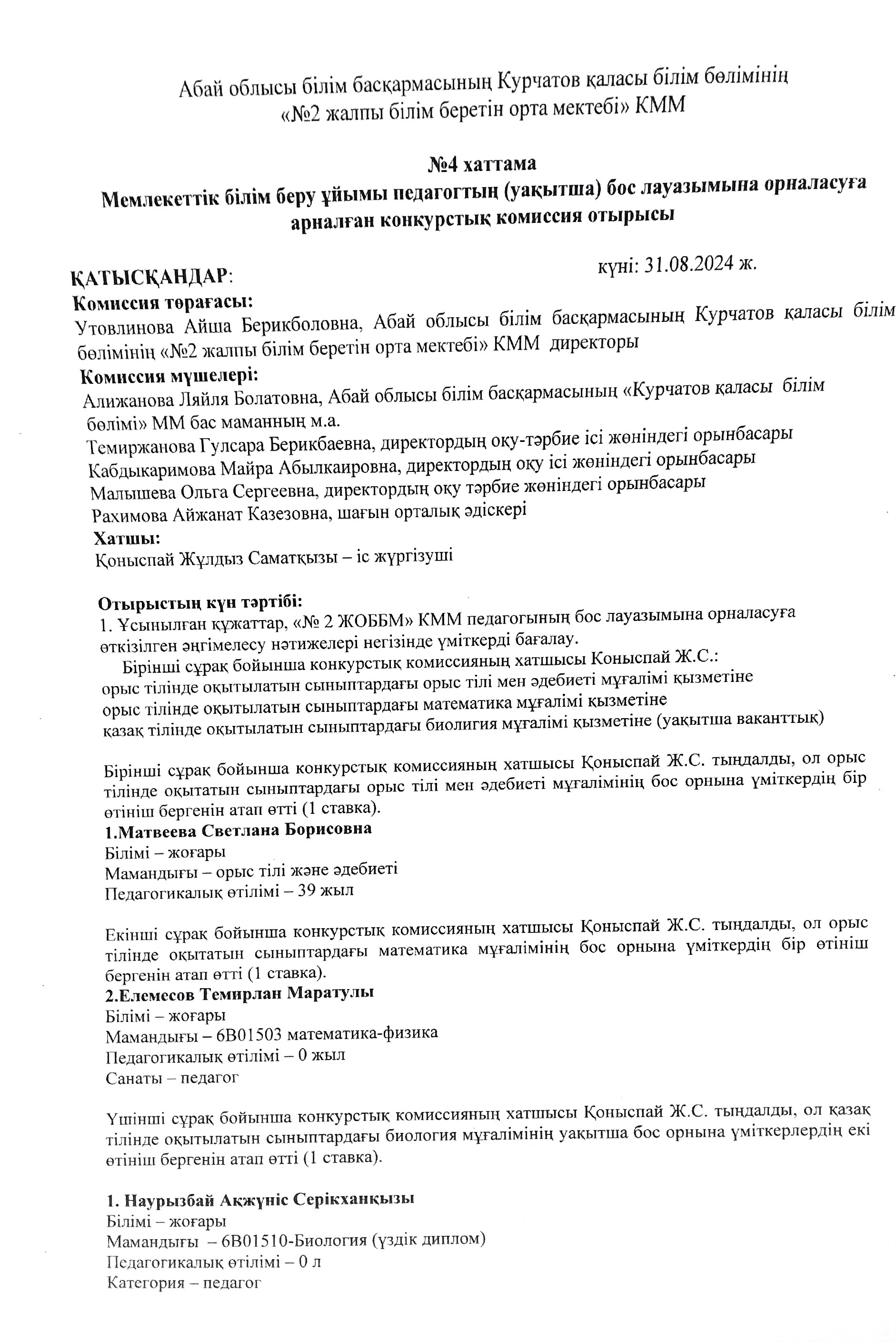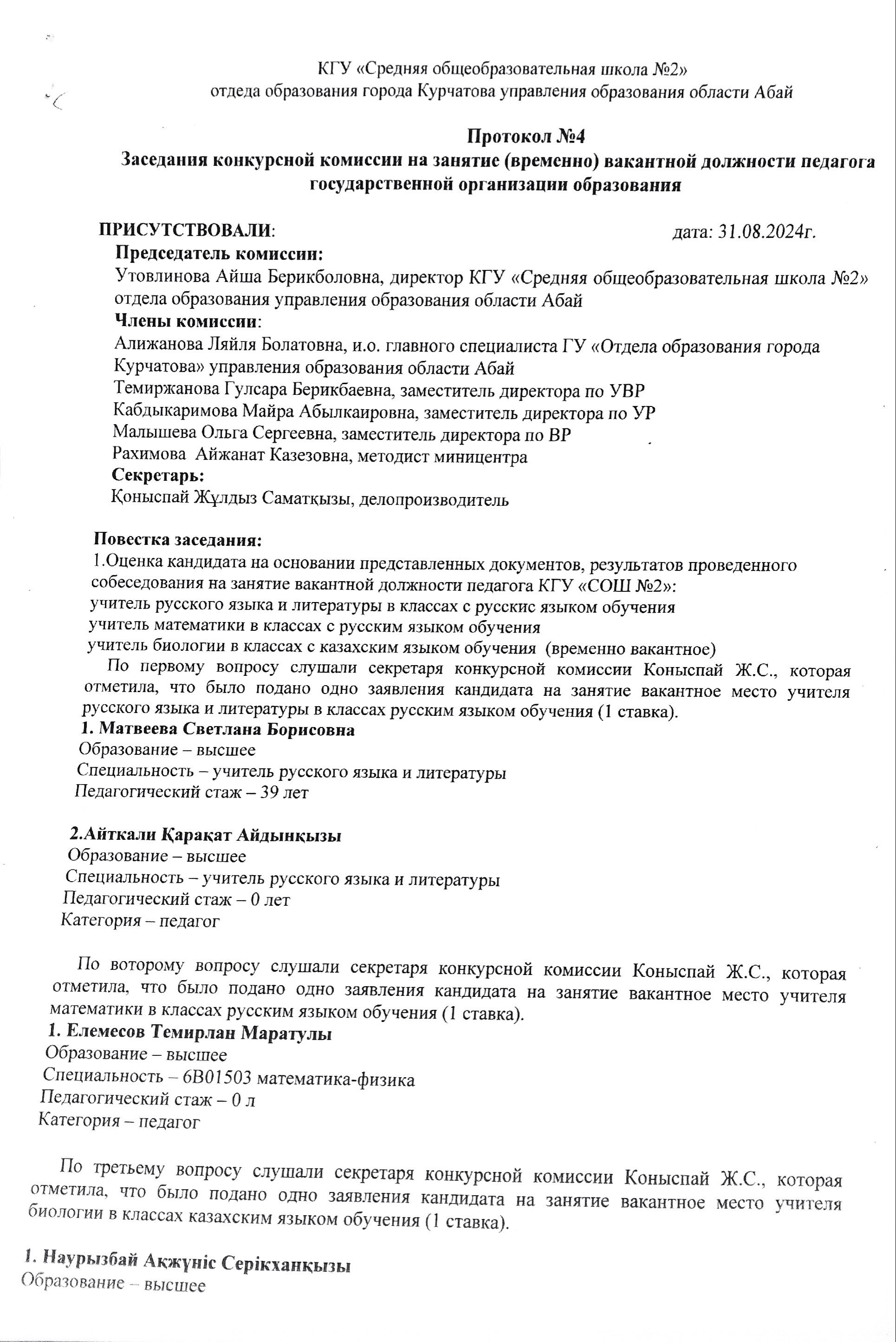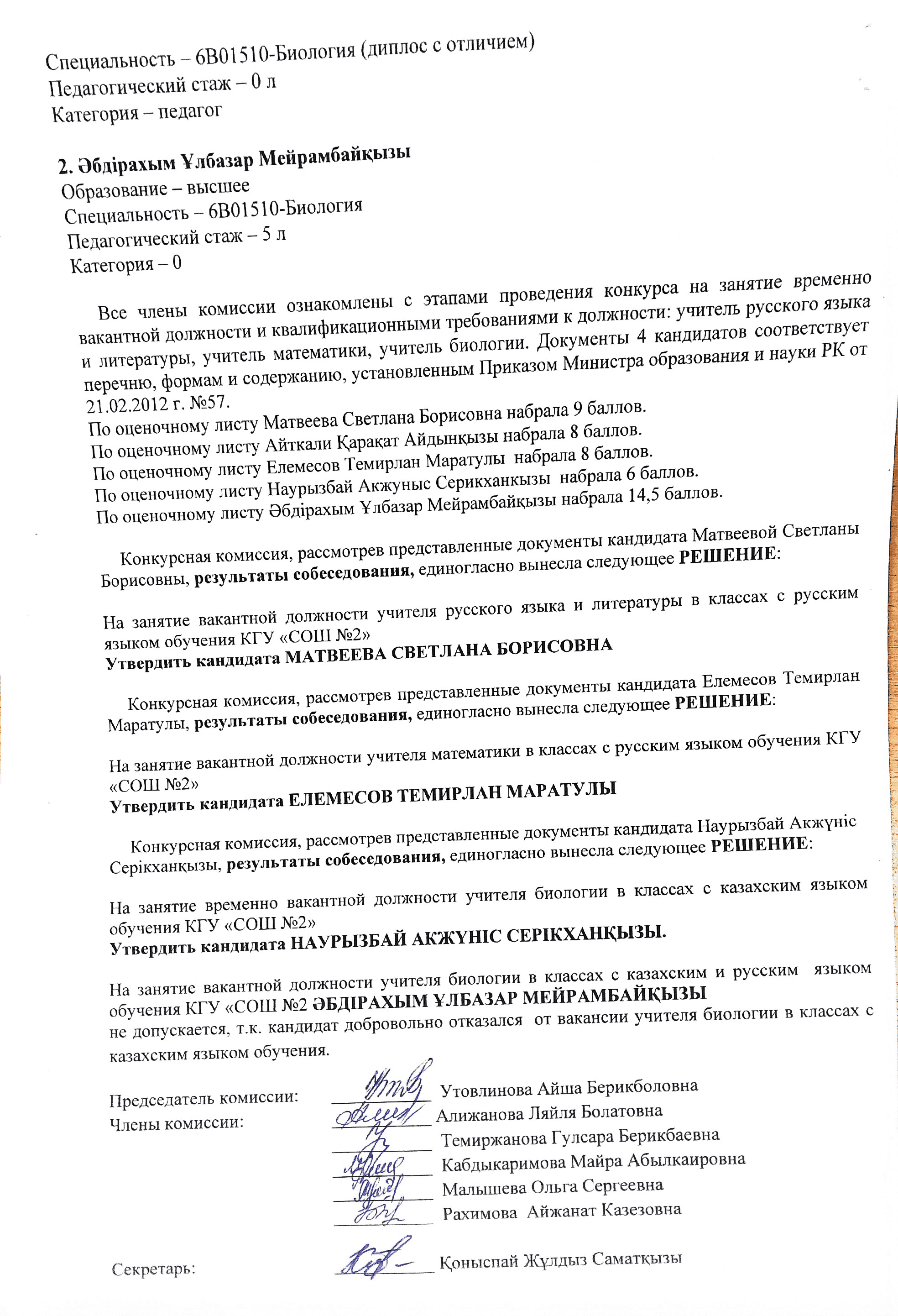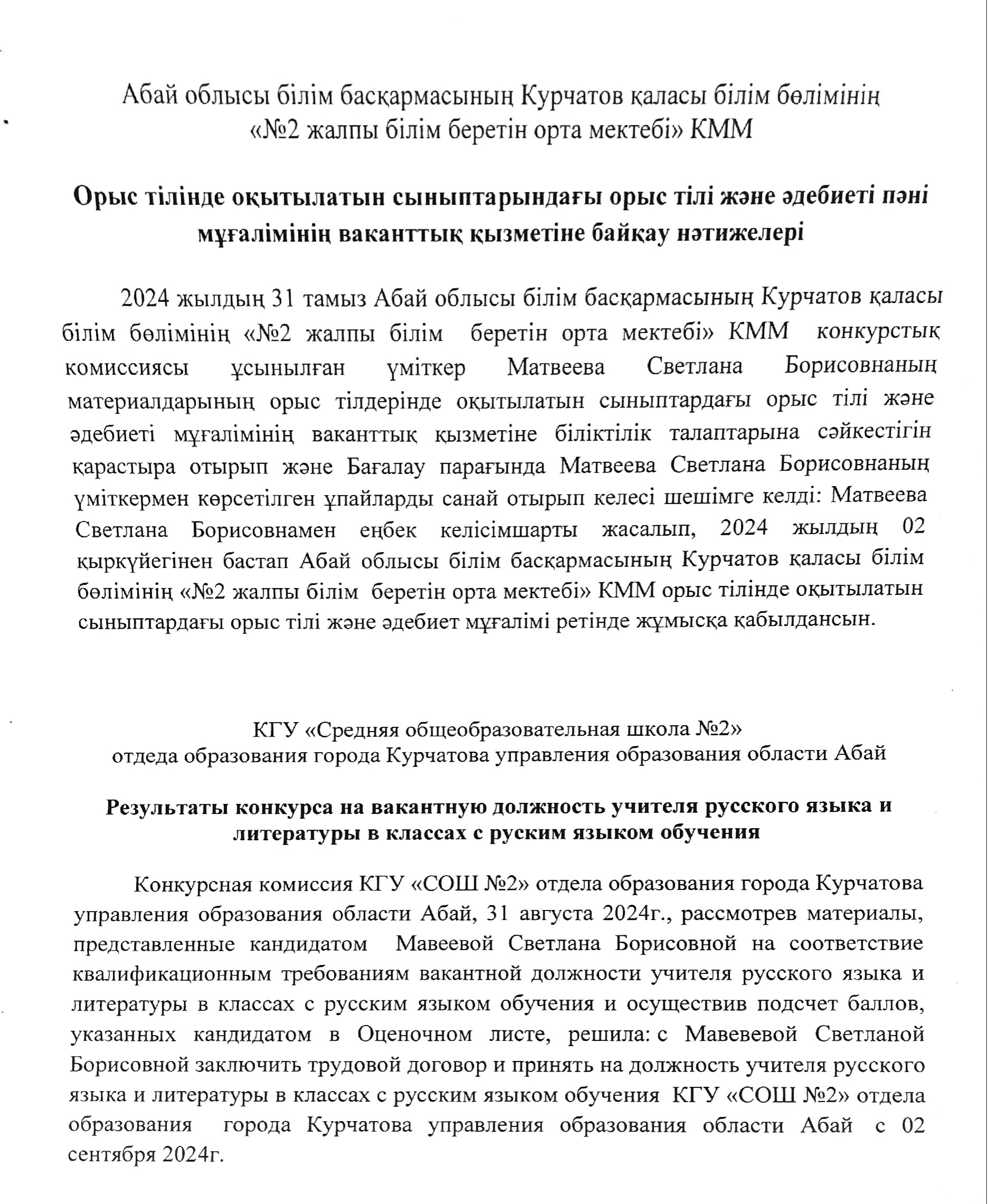 КГУ "Средняя общеобразовательная школа №2" отдела образования города Курчатова управления образования области Абай