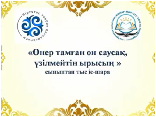 Ұлттық тəрбие –ел болашағы.«Біртұтас тәрбие»бағдарламасы аясында №2 ЖББО мектебінің 4 «А» сынып жетекшісі М.А.Лейменова «Өнер тамған он саусақ, үзілмейтін ырысың »сыныптан тыс іс-шара ұйымдастырды. Шараның мақсаты : оқушыларды халқымыздың ізгі қасиеттері: имандылық, инабаттылық, іскерлік негізінде тәрбиелеу, ана өнегесінен үлгі алу, тәрбиелік мәні бар салт-дәстүрлерді бойына cіңіру.