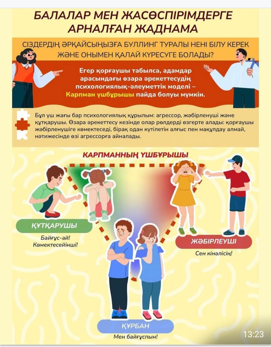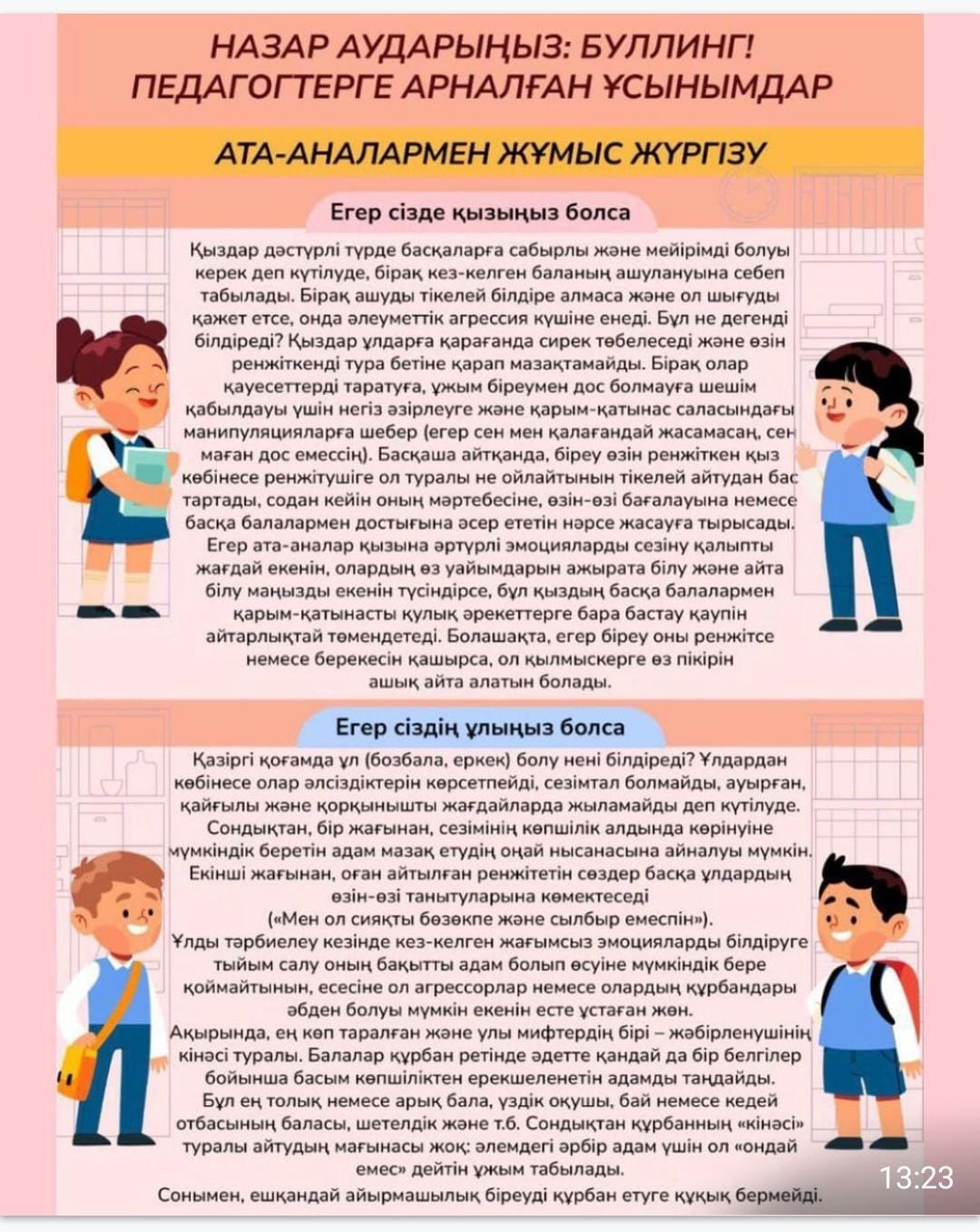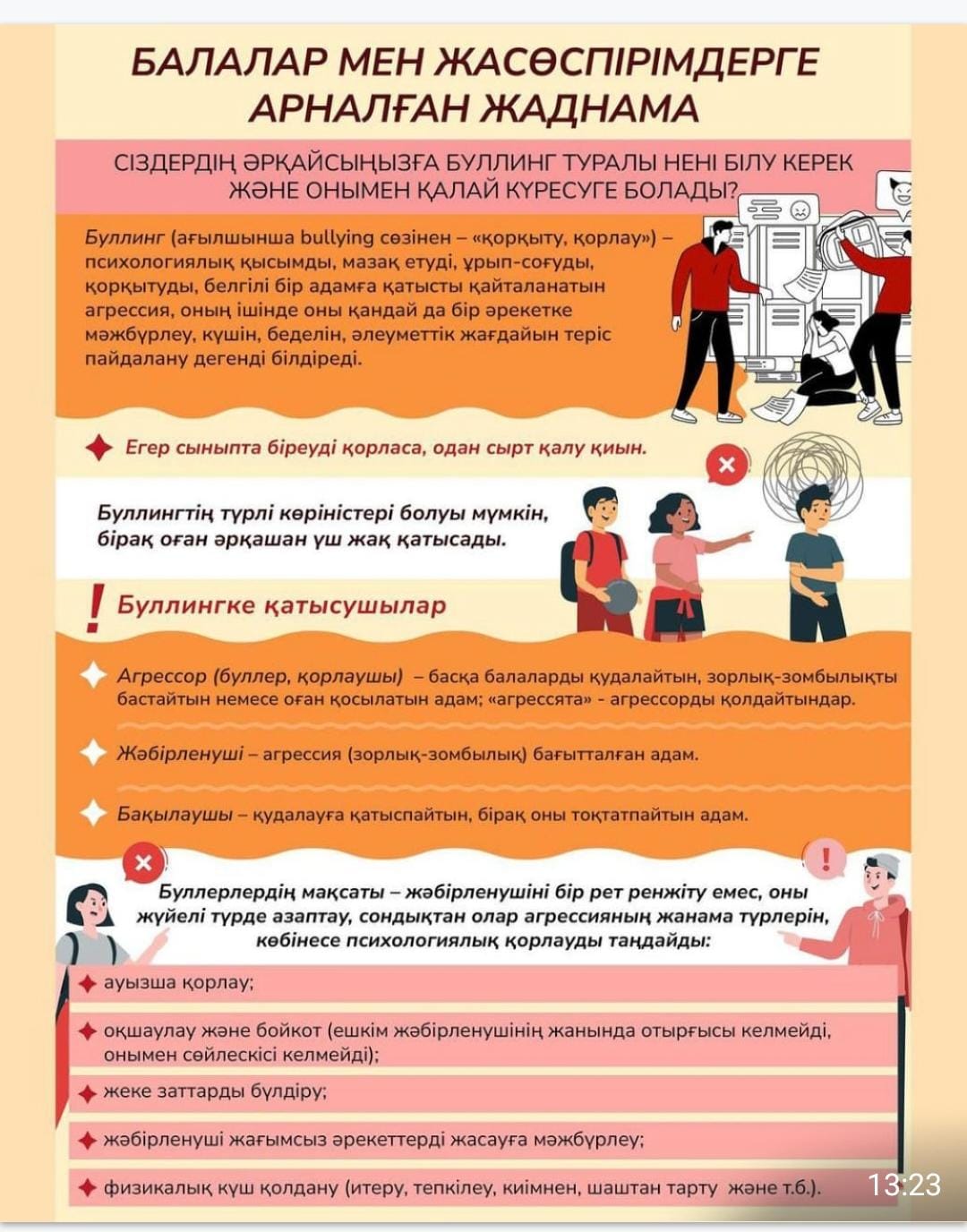 20.01.2025ж. Назар аударыңыз: БУЛЛИНГ! Педагогтерге арналған ұсынымдар. (Кабдыкаримова М.А.)